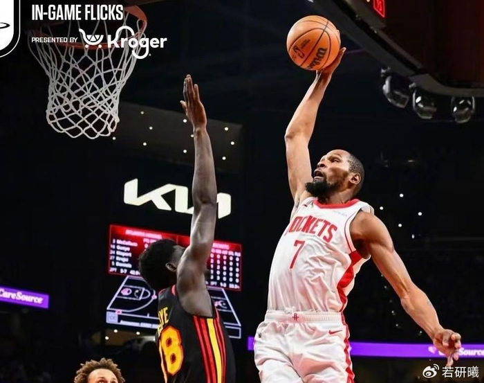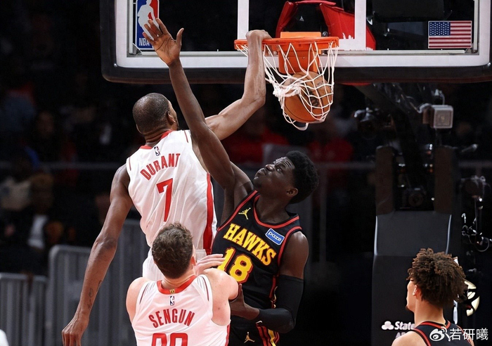 半场老鹰靠沃克和麦科勒姆就落后火箭1分,两人在外线火力全开联手砍分,让火箭防线疲于应对。火箭这边,杜兰特、谢泼德和申京的手感集体冰冷,三人投篮频频打铁。防守端火箭虽努力限制对手,但进攻端迟迟无法打开局面。所幸火箭防守强度始终在线,奉行“你不让我得分,我也让你难受”的铁血策略,硬生生把比分拖住,没有让分差进一步扩大。进入下半场,比赛风云突变。杜兰特如同大梦初醒,第三节突然爆发,他单节独揽16分,几乎无人能挡。无论是中距离跳投还是突破上篮,杜兰特都打得游刃有余,老鹰防守球员被他晃得东倒西歪。谢泼德也在此时找回状态,命中赛季关键三分,点燃全队。